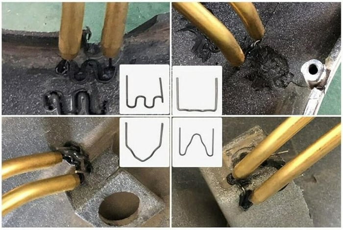 Spre deosebire de reparatiile cu lipici, capsele fierbinti se topesc in interiorul plasticului deteriorat, crapat sau rupt, iar pe masura ce capsele si plasticul se racesc, formeaza o punte de armare intre cele doua parti, restabilind partea din plastic la forma si rezistenta initiala. Odata ce fisurile au fost inchise si sudate impreuna, umple orificiile care au ramas goale. Zona va continua apoi sa fie slefuita si lustruita pentru a obtine un finisaj neted.